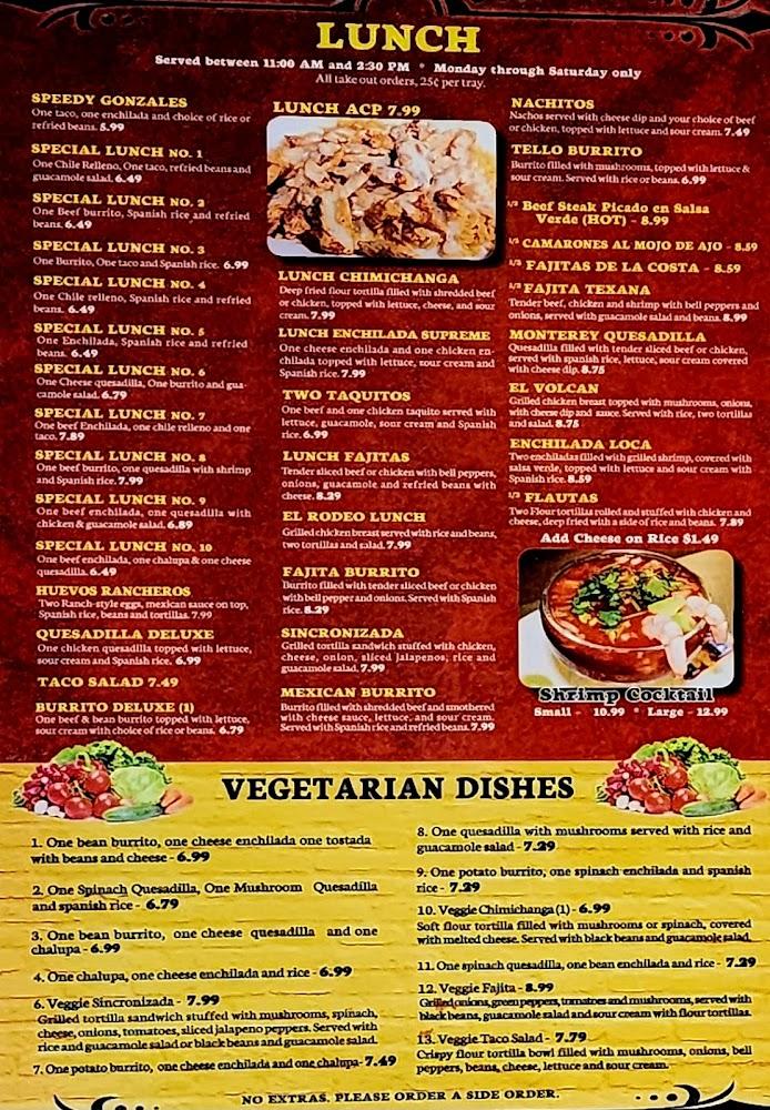 For lunch, special meal deals are available, providing great value. Vegetarian dishes are thoughtfully included, showcasing the versatility of Mexican cuisine. Desserts such as flan and banana chimichangas offer sweet endings to meals.
