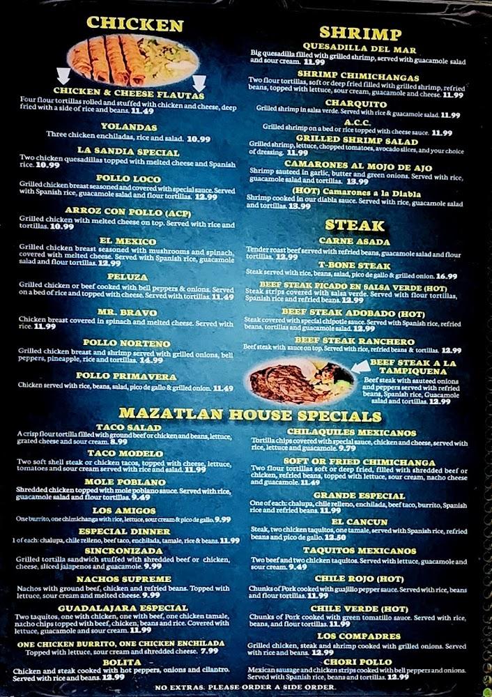 The menu at Mazatlan is extensive, featuring around 176 items. This includes specialties like tacos, burritos, enchiladas, and fajitas. Each dish is crafted with attention to authenticity and flavor.